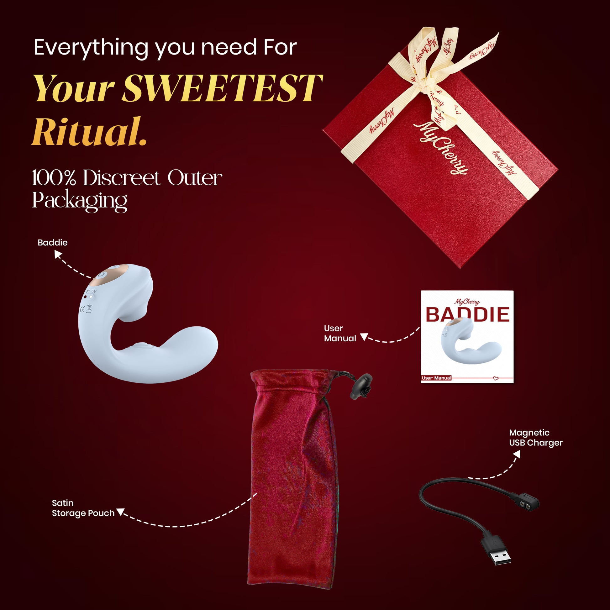 With internal curved stimulation, upper suction tapping, and deep quiet dual-motor vibrations, Baddie adapts to your body and your mood — whether you’re exploring solo or sharing intimate moments with your partner.